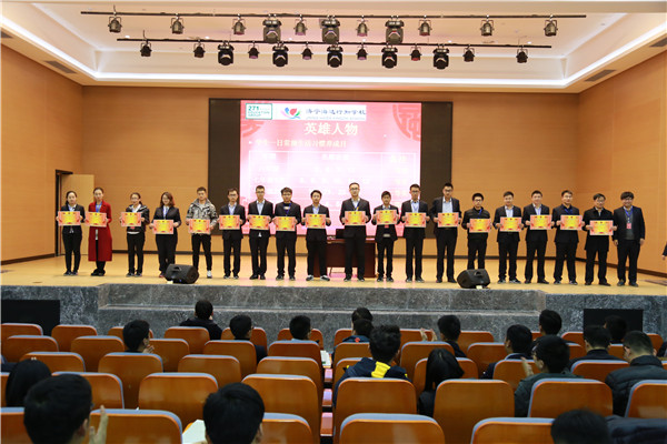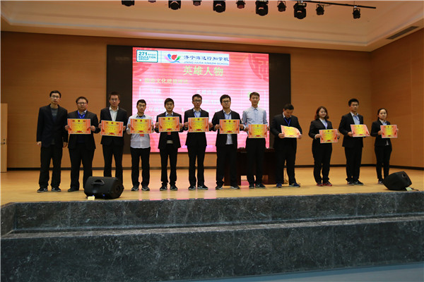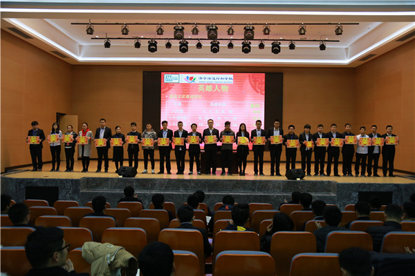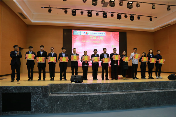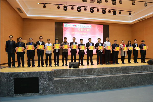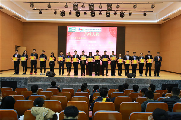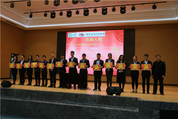 学生一日常规生活习惯养成月和宿舍文化建设优秀班级上台领奖