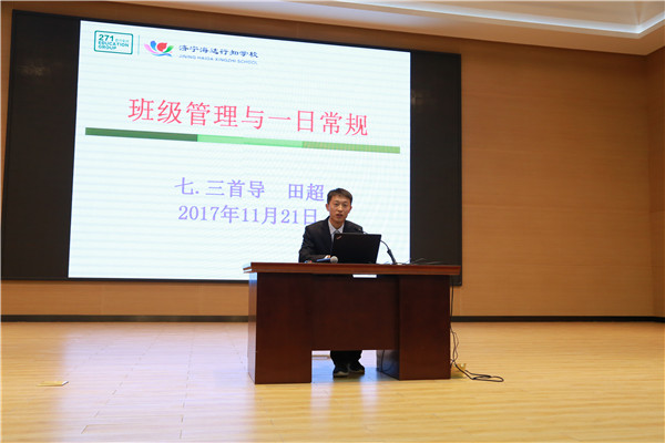 接着,三位首席导师代表进行经验交流、分享。小学部冯兴厂老师以勤能补拙为主题,从辰星八班一日常规、宿舍内务常规和班级文化建设三个方面进行了介绍。初中部田超老师从个人工作经历讲起,用朴实而深刻的话语与大家分享了班级管理经验和个人工作的心得,首席导师们感同身受,收获颇多。高中部刘书朋老师结合高一年级在养成月活动中的情况,分享了自己对班级文化建设的深刻理解,制度约束是以爱为前提的严格要求。
